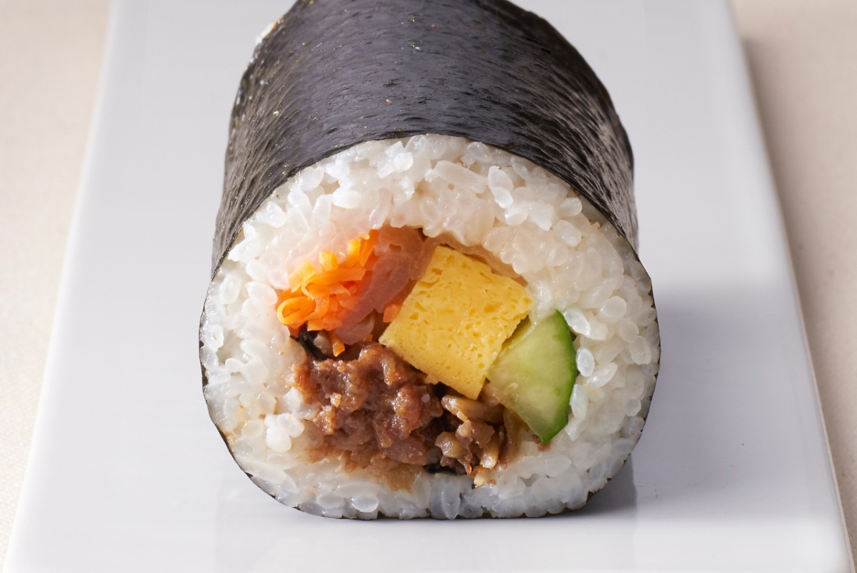 甘めに炊き上げた「牛肉しぐれ煮」は酢飯と相性抜群。金平の食感が楽しい食べ応えのある恵方巻です。